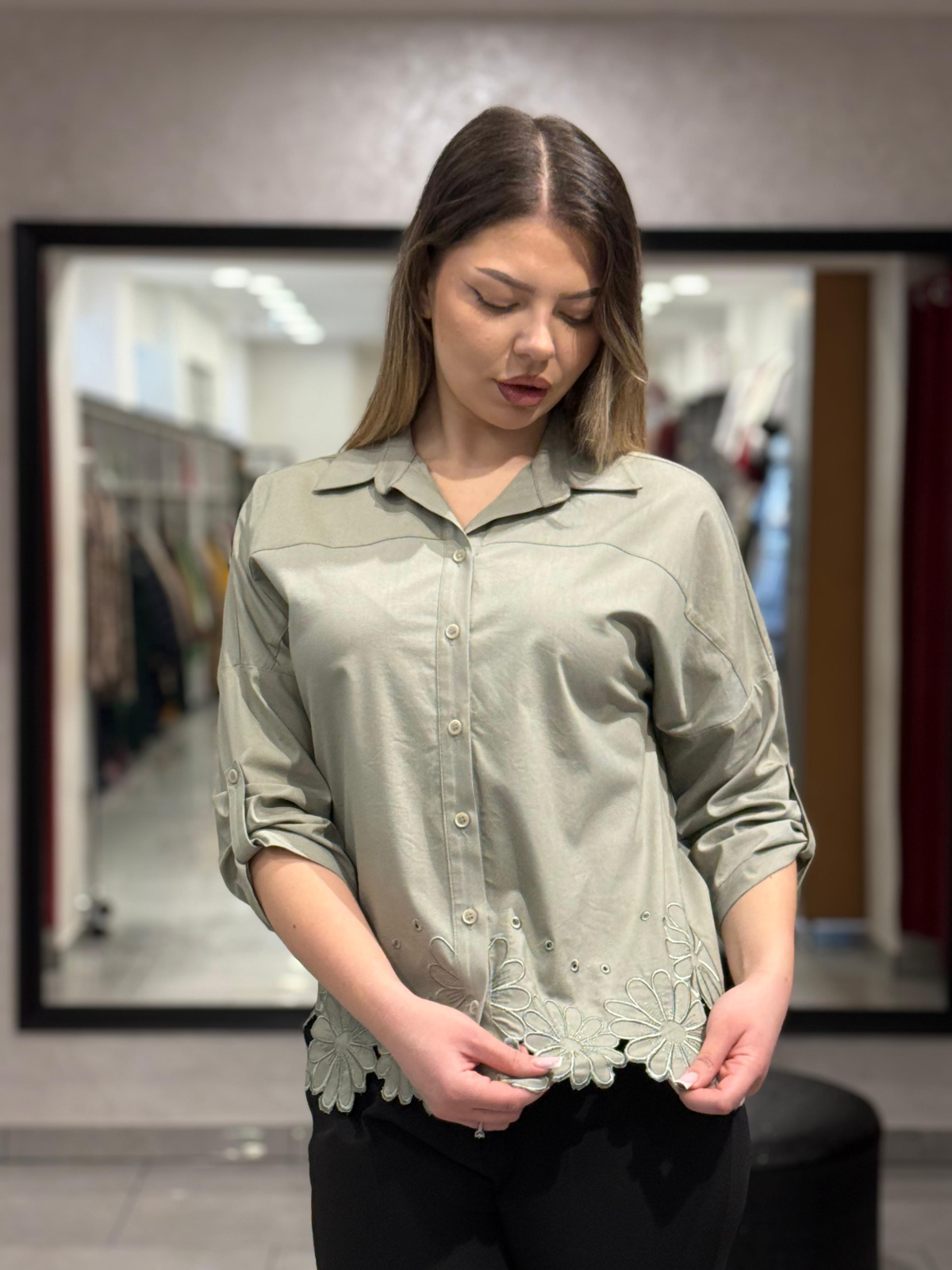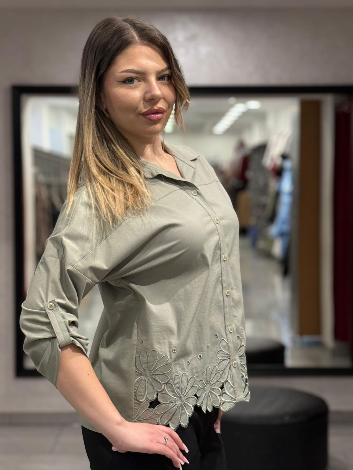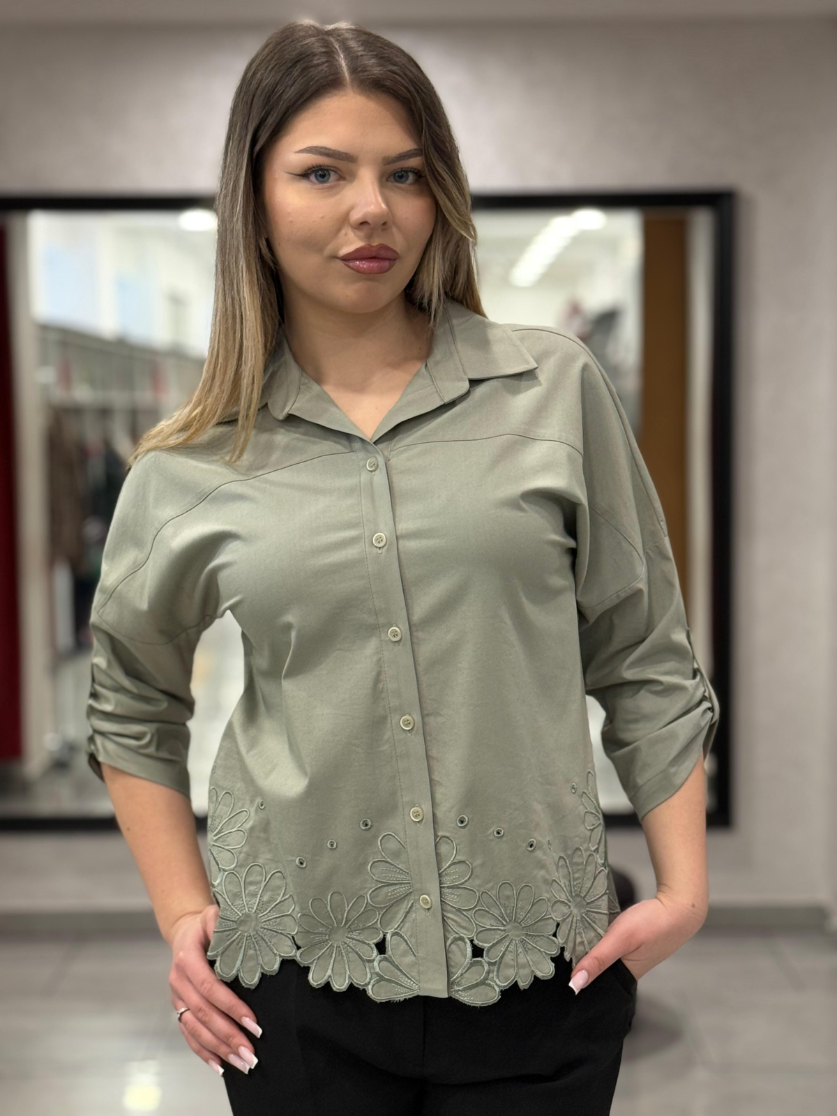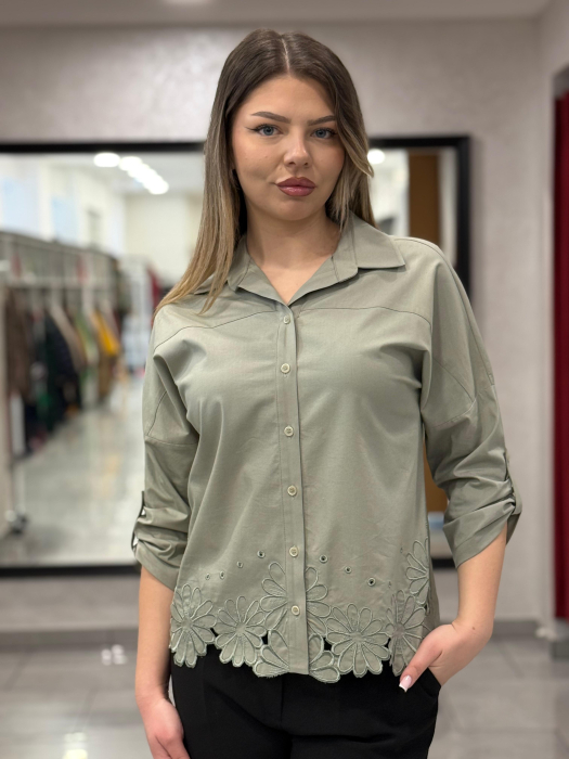 Cămașă kaki cu broderie 12410