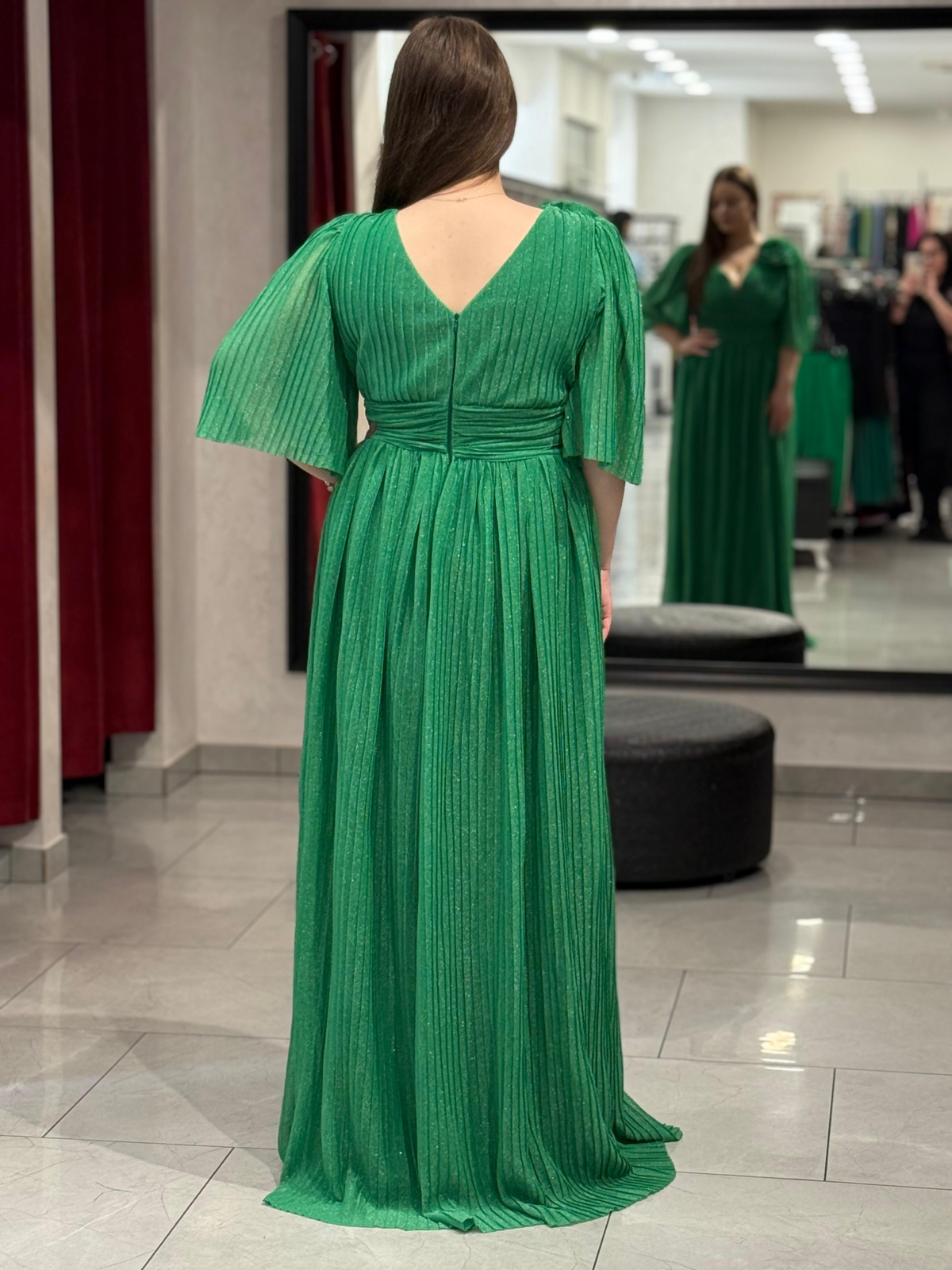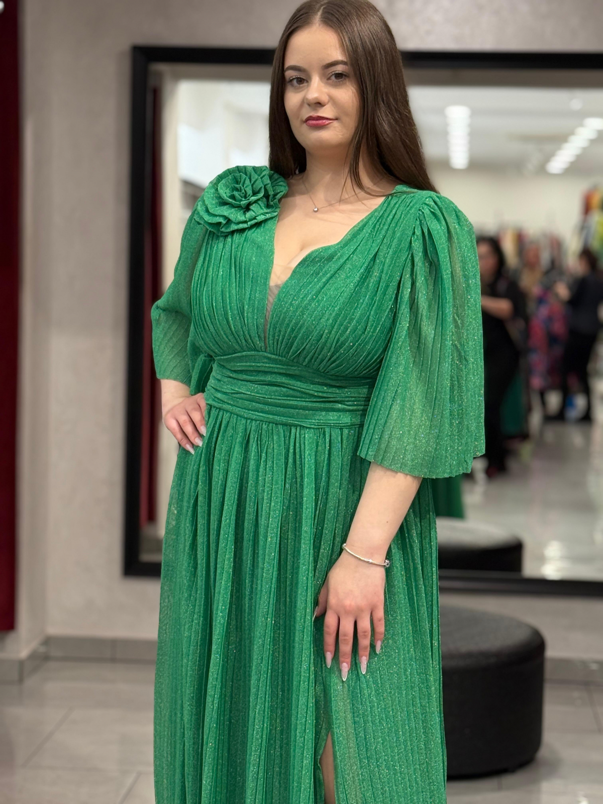 Rochie lunga verde sidefat 4504
